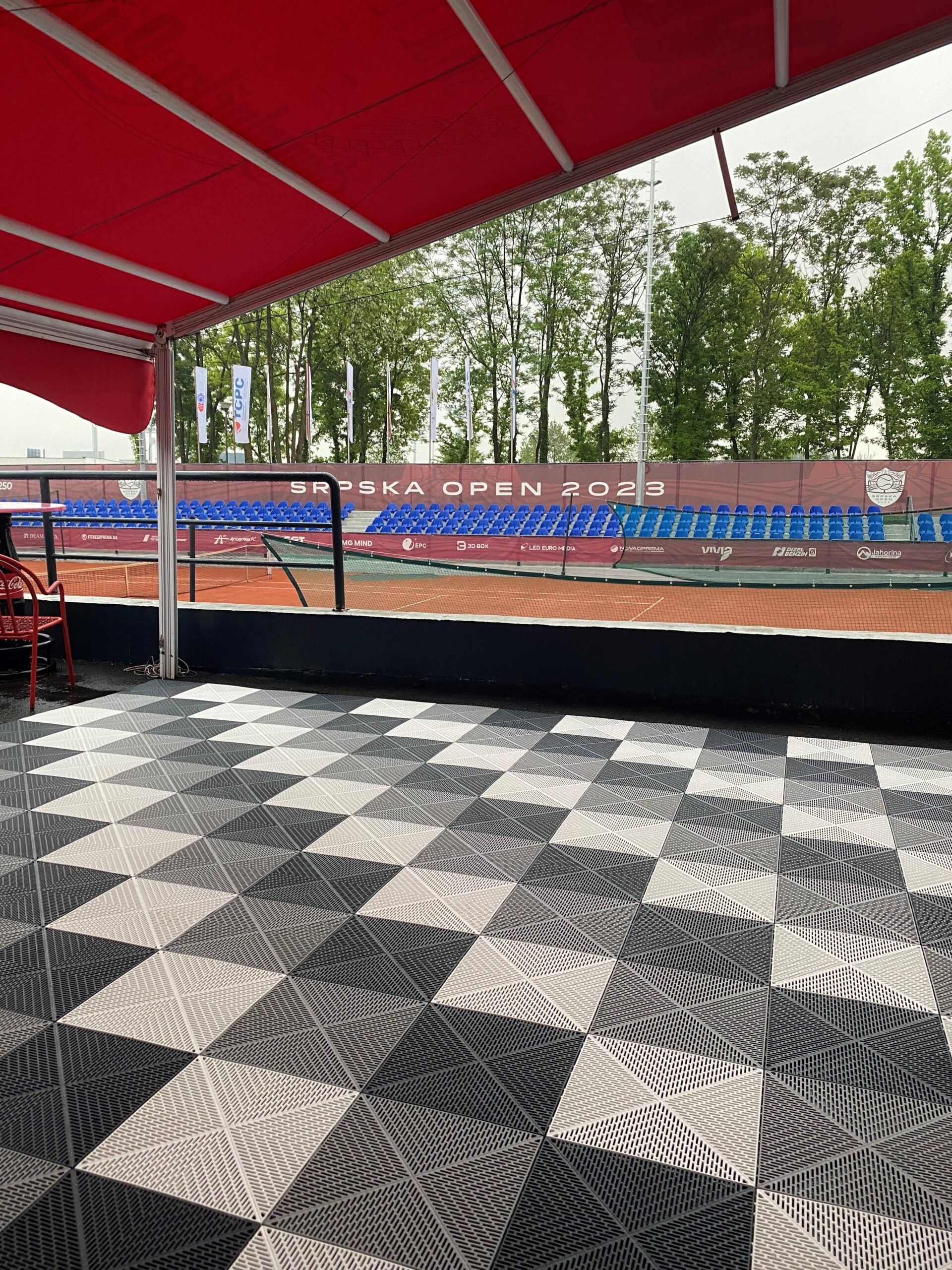 Podloga namenjena za prostore oko bazena, mešavina gume i PP. Podloge se ne klizaju i propustaju svu vodu.
